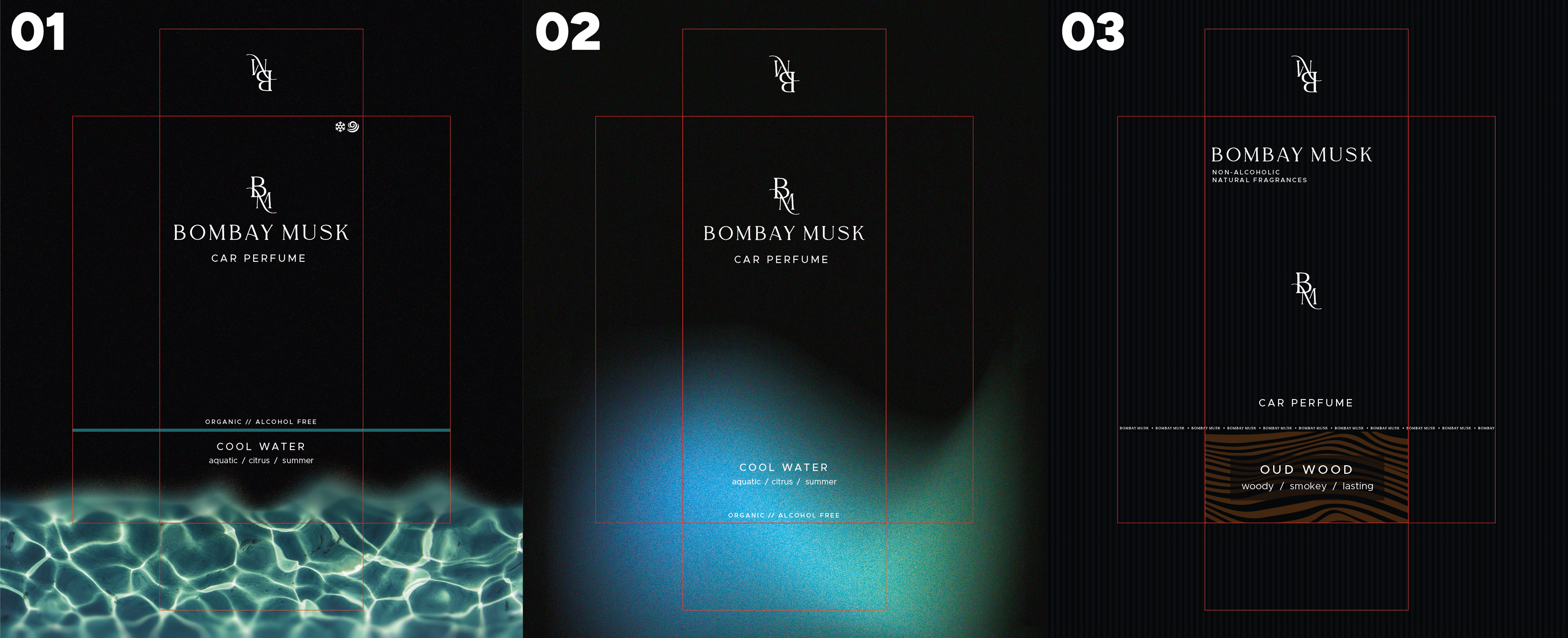 Concept 2 was selected because it could scale across variants by shifting color and provided more flexibility than relying on literal imagery for abstract fragrance names.